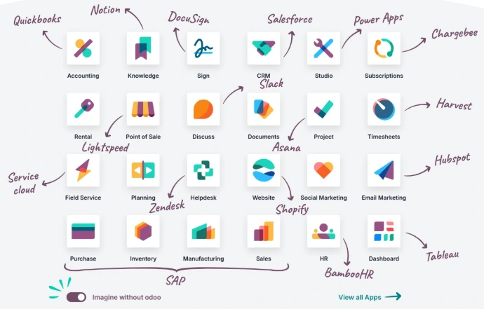 Odoo solves this by operating as a single platform. Sales, operations, finance, and reporting all live in the same system and share the same data model. When something changes in one area, it updates everywhere else automatically.